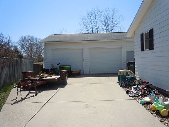 Comfortable ranch in SE Ames: features include: huge 2+ car det garage/shop w/ 2 8x10 garage doors, floor drain, furnace, 1/2 bath, air compressor included, and more, fenced-in yard, large garden shed, garden area, playset, deck, mature trees, fresh interior paint, 2 beds on main with formal dining (could be converted to 3rd bed), 3rd bed and 4th NC bed in LL, 3/4 bath and office/den in LL, new water heater, w/d included, and more. (Photos taken with a wide angle lens)