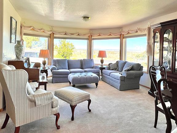 Welcome to 706 Knight Drive, a beautifully designed custom home situated on the hill at the edge of Hines. From its elevated setting, this residence offers some of the most breathtaking views in the area-panoramic landscapes that can be enjoyed from multiple rooms throughout the home. View is preserved by the adjoining lot that is included. Rarely do one-level homes in this quiet and desirable neighborhood come available, making this a truly special opportunity. Inside, the home features a spacious living room and dining area centered around a propane fireplace, which is also visible from the adjoining family room-perfect for both relaxing and entertaining. The kitchen is thoughtfully designed with birch cabinetry, under cabinet lighting, tile countertops, and an abundance of storage and convenience features. A breakfast bar and a cozy breakfast nook, surrounded by windows on three sides, create the ideal place to start your mornings while soaking in the scenery. The bedroom layout offers comfort and flexibility. Two of the bedrooms include charming window seats with built-in storage, while another enjoys a walk-in closet. The primary suite is a true retreat, boasting a generous layout with walk-in closet, double sinks, a walk-in shower, and a separate jetted tub. Sliding glass doors open to a private deck with built-in seating, perfect for enjoying quiet evenings or morning coffee outdoors. Natural light flows beautifully throughout the home, enhanced by a skylight and sun tube for bright, energy-efficient living. The exterior is as inviting as the interior, with low-maintenance vinyl and brick siding, composite roofing, and vinyl windows. The property is beautifully landscaped with underground sprinklers for easy care, while a paved circular driveway enhances curb appeal and provides convenient access. 706 Knight Drive combines comfort, thoughtful design, and stunning views in one exceptional package. A home like this is a rare find-don't miss the chance to make it yours. TAXES: $4,100.30 ($3,939.35 & $160.95); FINANCING: Cash or bank; YEAR BUILT: 1997; SQ. FT.: 2170; LOT SIZE: 0.99 (.52 & .47); HEAT SOURCE: Heat pump & propane fireplace (double sided); BEDROOMS: 3; BATHROOMS: 2; APPLIANCES: BI dishwasher, BI oven, refrigerator & induction range top; GARAGE: Attached double