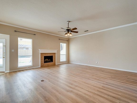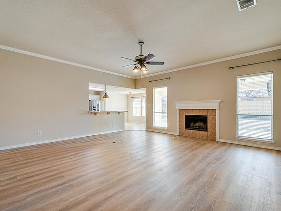 * ADORABLE IN ALVARADO!! * Updates throughout including fixtures, stainless steel appliances, flooring and more! Great split floorplan with a large primary suite. The modern eat-in kitchen boasts SS appliances, a breakfast bar, a bright breakfast nook, ample prep space, and a pantry. The open concept with a fireplace is perfect for entertaining friends and family. Master suite with separate shower, garden tub, dual sinks, and two large closets. Nice sized backyard with covered patio adorable playhouse provides additional outdoor living and entertaining space.