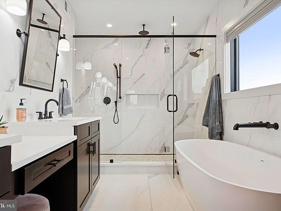Step into a world where design dares to dream in color. This 40-foot vertical oasis defies modern neutrals with unapologetic personality. Among ten luxury residences, this corner jewel is a testament to thoughtful living, where every surface tells a story, and every detail invites you to linger. Your journey begins at street level, where warm limestone creates dialogue between classical elegance and contemporary confidence. Professionally landscaped planters frame your arrival, while a well-lit keypad entry welcomes family, friends, and trusted guests. Cross the threshold into a foyer with custom lighting and elevator access to all five levels. Here you'll find a coat closet, discreet garage access, and a secluded ground-floor bedroom suite with its own outdoor patio—perfect as a creative studio, private haven for extended family, or nanny's retreat. The two-car garage is wired for electric vehicle charging with custom cabinetry and interlocking mats. The lower level becomes your private club—a subterranean retreat with custom-built media room, wet bar, and sink for movie nights and poker games. Off the media room, discover a bathroom honoring the refined ritual of a good cigar. A wine wall displays your collection, while thoughtful storage keeps everything at hand and out of sight. The white oak wood with a custom black iron railing frame the stairs throughout the home with step lighting transforms evening climbs. Each landing opens as a gallery for your art. The second floor is the home's beating heart. The gourmet kitchen features ceiling-height custom cabinetry in a sophisticated sage palette, crowned with brass hardware. Custom-designed quartzite counters cascade in a dramatic waterfall edge. A fired clay sink anchors the space, while a custom hood rises overhead. The pot filler at the range speaks to efficiency, while the kitchen island invites morning coffee and conversation. New lighting and abundant storage complete the space. The dining room's chandelier presides over a table where dinner parties linger. The living room wraps in natural light from two banks of windows. A gas fireplace centers the composition, flanked by built-in bookcases. Step through to the expansive deck with a BBQ for grilling and flower boxes overflowing with seasonal color. The third floor offers three bedrooms—one currently a home office. There is one ensuite bedroom featuring custom wallpaper, lighting, mirrors, and cabinetry. The laundry room has custom built-ins and thoughtful tile work. The fourth floor is entirely yours. This expansive corner primary suite captures light from multiple exposures with remote-controlled blinds. Custom-built dual closets and radiant floor heating create spa experiences. The bathroom features a double vanity, an egg tub for soaking with city views, and a spa shower enclosed in glass. The wallpapered hallway creates a beautiful transition. This level includes a powder room and wet bar for guests before ascending to the rooftop. The fifth-floor rooftop offers 360 degrees of Philadelphia magic: skyline silhouettes, stadium lights, Fourth of July fireworks at eye level. The outdoor kitchen with BBQ, refrigerator, and sink means you'll never leave paradise. An outdoor television, expansive seating area, and fire pit anchor gatherings, while fully irrigated cedar flower boxes overflow with color—your private garden in the sky. Throughout, the “Savant” whole-house system manages automatic EV charging and whole-house audio. This residence is for those who understand luxury is about excellence in every detail. So many extra's we couldn't fit them in! Come and take a look at Passyunk Square's most distinctive address, where James Beard-recognized restaurants, idyllic parks, and local shops await. Your colorful oasis awaits! This home has over 7 years left on its tax abatement and was inspected prior to listing. All repairs made and documented.