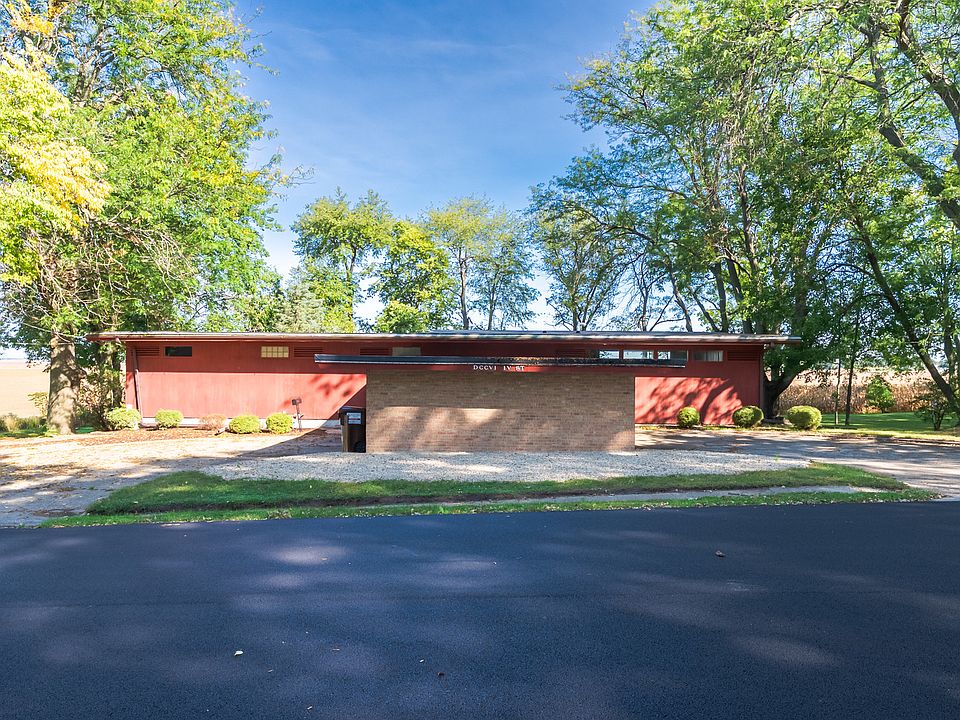 If you're looking for a special mid-century modern getaway, this may be the perfect house! The Griffith family was one of the founders of Ashton, IL, and this house was designed and built in 1955 by Stan Griffith for his own family. Set on a lovely lot on the north edge of town, this delightful MCM walkout ranch is almost completely original, and features many wonderful architectural details like exposed interior brick, expansive windows on the back of the house with "views for miles", a low-voltage lighting system, beautiful wood paneling and matching cabinetry, numerous built-ins, furniture designed & built just for the home, cork floors, Hotpoint cooktop with wall-mounted push button controls and more. Primary bedroom has a nursery off to one side (perfect for a home office) and there's a double bedroom on the main level, too, that could be separated with a wall or room divider to make two separate rooms (each side of the double bedroom has its own door). Main level bathrooms use colorful, innovative materials for extra MCM charm. Walkout basement features a large rec room area, unfinished storage area, two separate half baths, and three more rooms that could be used as bedrooms, offices, storage, hobby rooms, or whatever suits your lifestyle. TONS of storage throughout with closets drawers and cabinets tucked away in all sorts of surprising places - and more closets outside at the far end of the carport that's centered on the semi-circular driveway. There's nothing else like it in Ashton, and it's just a couple hours west of downtown Chicago, making for a perfect - and affordable - weekend getaway. Home & property are being sold as-is as part of an estate.