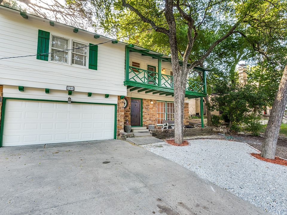 Discover this delightful 3-bedroom, 2-bath gem in the heart of West Kessler, just steps from Stevens Park Golf Course! This inviting home boasts gleaming hardwood floors throughout and a convenient attached two-car garage. Nestled on a beautifully elevated, tree-filled lot, you'll feel like you're in your own private oasis. Step inside to a bright and airy living area with a cozy fireplace, perfect for relaxing or entertaining. The downstairs bedroom is a versatile space with a bonus office area and a full bath. Follow the charming decorative tile staircase upstairs to find a warm and welcoming kitchen, a lovely dining room, and two more bedrooms. The updated hall bath adds a modern touch to this home. The spacious master suite features a generous balcony overlooking the picturesque front yard—an ideal spot for morning coffee or unwinding in the evening. The backyard offers a fantastic deck for entertaining. Come see why this West Kessler beauty is the perfect place to call home!