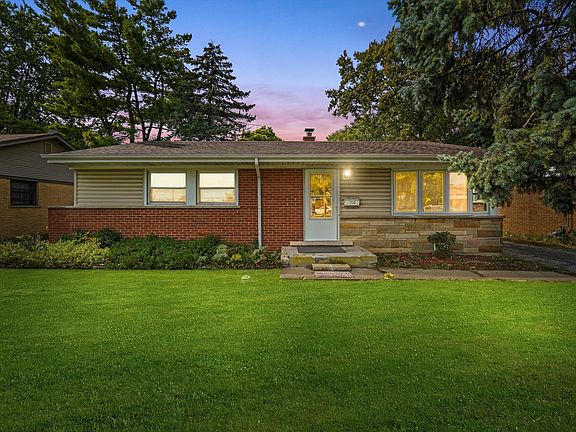 Welcome to this move-in ready brick ranch, ideally located just minutes from downtown Mount Prospect, the Metra station, and Randhurst Village! This beautifully maintained home combines thoughtful updates with timeless charm. Step inside to a spacious, light-filled living room featuring large windows and a welcoming layout. The kitchen has been tastefully updated with stainless steel appliances, granite countertops, a undermount sink and faucet, stylish tile backsplash, and generous cabinet space with room for a table. Hardwood flooring runs throughout the home, adding warmth and continuity. The bathroom has been refreshed with a new vanity and fixtures, and the entire home has been freshly painted in a soft gray with crisp white trim and doors. Updated lighting and hardware throughout complete the modern look. Enjoy outdoor living in the private fenced backyard with mature trees and a spacious patio. Perfect for relaxing and entertaining! A large driveway with a 2-car garage offers ample parking and storage space. Conveniently located near schools, shopping, dining, parks, and major transportation. This home is truly move-in ready and waiting for you!