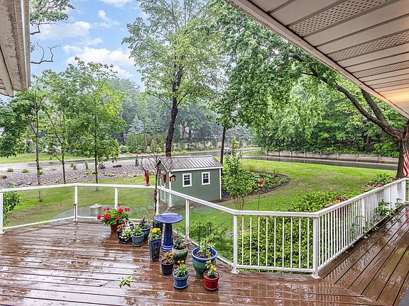 Low HOA's plus main floor laundry facilities! Pride of ownership is evident in this corner townhome! The present owner landscaped the yard and added a garden shed for additional storage. See the complete list of updates in the supplements. Gorgeous cherry cabinetry & wood flooring! Corian countertops, tile backsplash, 5 skylights, all interior walls repainted & cabinetry refreshed in 2023! Vaulted ceilings, Hunter Douglas window treatments, walk-in closets, 3-season porch, huge laundry room with tons of built-in-storage, commercial washer & dryer, new HVAC system, water heater & softener in 2015. New roof and skylights installed in 2022, along with new LED lights. Powered sunshade awning over upper deck. 7 windows on the upper 4-season porch, entryway, and 3-season porch have privacy coating and UV protection. Don't miss this beauty! 55+ association...one owner must meet criteria.