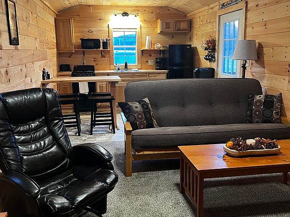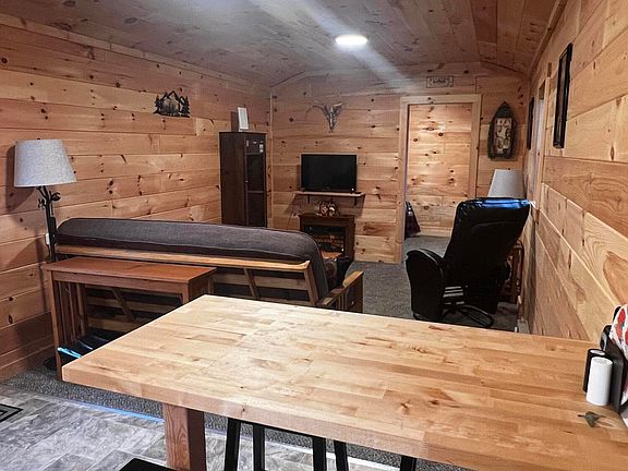 Rustic weekend retreat or short-term rental opportunity! Escape to your own private getaway nestled on just under 3 acres of natural beauty near 8,300 acres of State Game Lands- perfect for hunting, hiking and endless outdoor adventure. This brand-new, fully furnished cabin offers the perfect blend of rustic charm and modern convenience-complete with electricity and Spectrum high-speed internet, so you can stay connected while you unwind. Enjoy the serenity of your naturally made beaver pond, home to native trout and visiting waterfowl, creating a peaceful backdrop for fishing, birdwatching, or simply relaxing by the water's edge. Gather around the fire pit in the evenings to take in the tranquil scenery and the sounds of nature under a canopy of stars. The property includes a heated outdoor shower house and a tastefully decorated porta potty with solar lighting guiding the path. Everything is ready for your weekend retreats or to start generating income as a short-term rental. Keep it rustic and enjoy as-is, or take it to the next level-drill a well and add a septic system to transform this retreat into a comfortable year-round residence. Whether you're seeking a quiet escape, an Airbnb-ready investment, or the foundation for your dream homestead, this unique property offers endless potential and natural beauty at every turn.