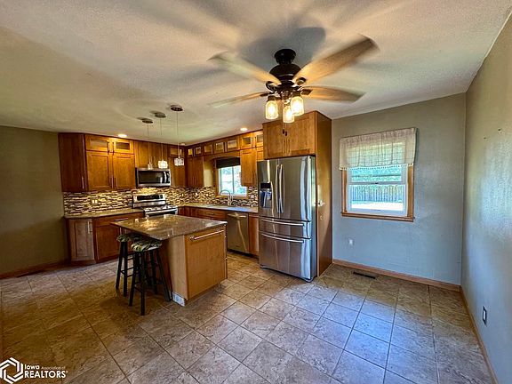 Terrific brick ranch home in West Burlington, directly across from the school, features 4 bedrooms (3 on main, 1 in LL with egress), 2 bathrooms, and a 2 car attached garage. Main floor includes living room, kitchen, full bathroom and 3 bedrooms. Living room and bedrooms all have hardwood flooring. Kitchen features hard surface counters, updated cabinets, an island, tile flooring and includes stainless appliances. Both bathrooms have also had updates. Lower level includes family room, bathroom with walk in shower, conforming bedroom, laundry room and storage room. Breezeway connects the house and 2 car attached garage and features a deck on the back overlooking the large and sprawling fenced in backyard. Shed is included. Lots to enjoy with this wonderful home so schedule your appt now! This home is currently listed as a "Delayed Showing." Under no circumstances will any showings be allowed until 8 am on 10/4/25. The seller will not accept any offers earlier than 10 pm on the first showing date."
