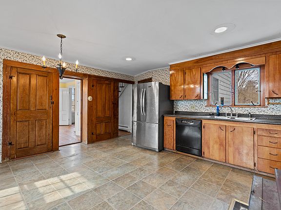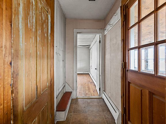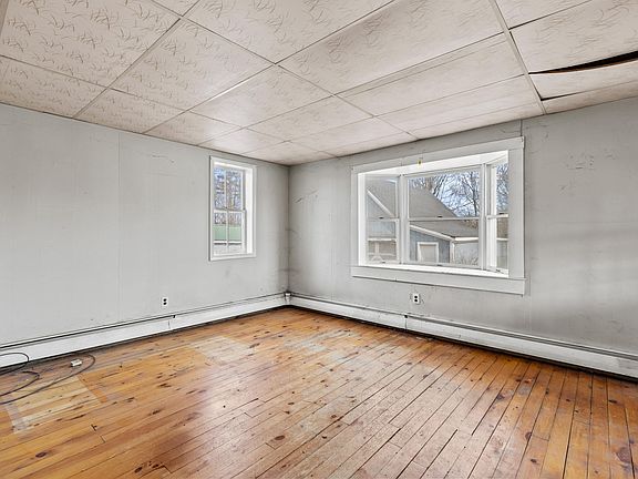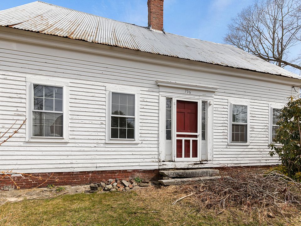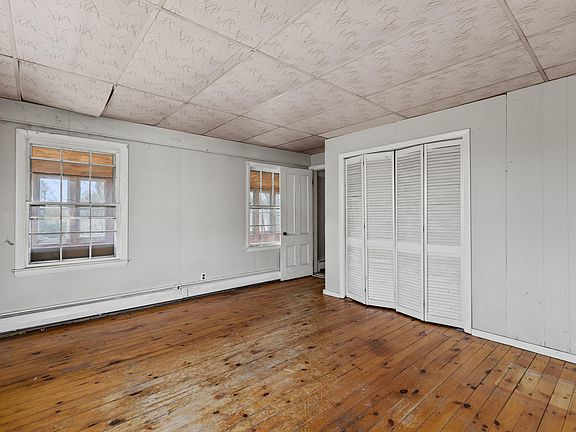 Located on 4.7 acres of rolling, grassy meadow, this farmhouse was built in 1860 and sits on a town-maintained road. The house has 3 bedrooms, 2 full baths, formal dining room, living room, and a first-floor bedroom. The kitchen has an adjacent laundry room. All bedrooms have at least two closets. There is a room off of the hallway on the second floor that potentially could be a fourth bedroom. There is an enclosed screened-in sun porch, oversized single car detached garage, storage above garage, shed, wood burning stove, pellet stove, fenced in yard with an electrified fence, and an above ground pool. Beautiful gardens, clapboard siding, metal roof, two chimneys, wide pine floors, and some hardwood floors. 1428 square feet of living space, older style windows, newer furnace. Property is close to all services and major highways. The property is being sold ''as is''. Property may not be financed as a VA or FHA loan. For a video go to YouTube and enter the property address.