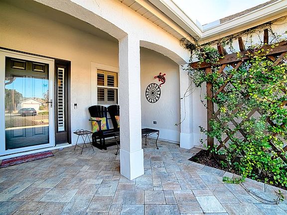BOND PAID! ROOF (2023), HVAC (2017) Lovely, Unique, Light & Bright San Marino Designer Home featuring three bedrooms, two bathrooms and a two-car garage. Terrific Curb Appeal - Freshly painted exterior, new drive, walk, & front patio! The well-manicured landscaping in the front yard sets the stage for the beauty and character inside! The eat-in kitchen is equipped with Stainless Appliances and there are plenty of cabinets and counter space. The kitchen opens up through glass sliding doors to an enclosed lanai with mini split (2022). There are two spacious living areas - one with two sky lights! This is a split floor plan with the Primary Bedroom and Ensuite on one side of the home and the Guest bedrooms located on the opposite side. Both guest bedrooms have built-in closets and there is a guest bath between them. Being located in the VILLAGE of RIO GRANDE, this property is simply unbeatable, situated under a mile to Spanish Springs Square and very close to Lake Sumter Landing - Plenty of shopping, dining, and entertainment options. This San Marino designer home is not only a perfect place to call your own but also presents an exceptional investment opportunity.
