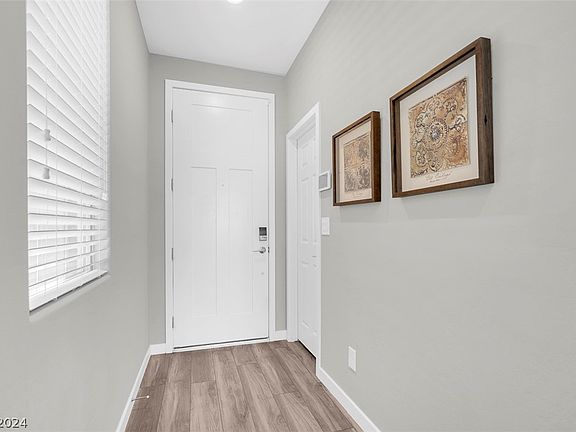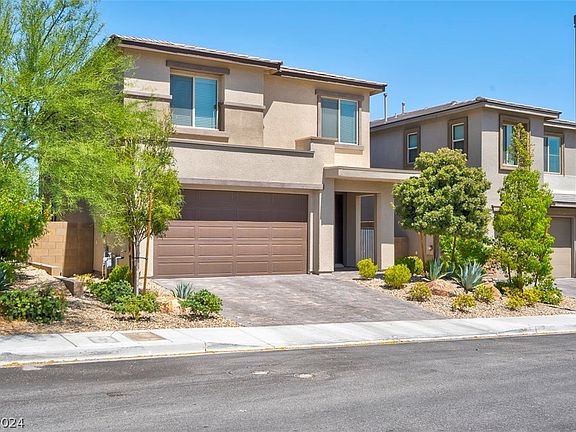 Discover unobstructed Strip views from this charming, highly upgraded, gated Summerlin home. This modern, open-concept 2-story model-like home offers 1,835 sq. ft. of living space, featuring 3 bedrooms, a loft, 2.5 baths, and a 2-car garage. Enjoy breathtaking city and mountain vistas from your private balcony. The main level boasts sleek laminate flooring and an upgraded kitchen with quartz countertops, a breakfast bar, stainless steel appliances, double built-in ovens, and a pantry. Additional highlights include a covered patio, artificial turf, a private spa, and a balcony off the primary bedroom. The spacious loft provides flexibility and can be converted into a 4th bedroom. Experience the adventure playground of Las Vegas, with hiking, climbing, and cycling at your doorstep. Just minutes from the entertainment, shopping, and dining options of Downtown Summerlin and Red Rock Casino, with immediate access to the 215 and Red Rock Canyon. Welcome to your dream home!