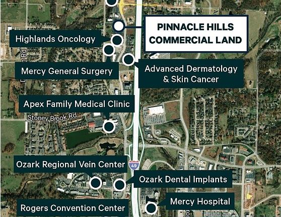 Pinnacle Hills Commercial Land offers a prime development opportunity in Rogers, AR. Conveniently situated in an established office and medical hub, this 1.38-acre parcel boasts high visibility with over 24,000 vehicles passing daily. The property is surrounded by top amenities including Walmart AMP, Top Golf, and Pinnacle Hills Promenade, making it an ideal location for various commercial ventures. Quick access to I-49 ensures excellent connectivity and ease of commute.