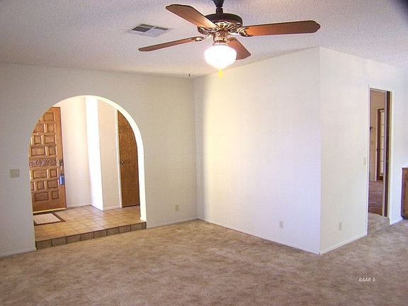 A GREAT BUY IN A POPULAR NEIGHBORHOOD! All NEW interior paint! Tiled entryway leads one under an archway and into well-lit stepdown living room featuring a large picture window. Dining area hosts a full-wall-length china hutch. Kitchen with tile counters, full appliances, and oak cabinets and a breakfast bar area with a 2nd built-in wall length cabinet unit for maximum interior storage space. Just off of kitchen is roomy family area with fireplace. Master bedroom is spacious with a large walk-in closet. Double sink master bathroom with shower. Living room, dining area, hallway, and bedrooms all are carpeted. Dual pane windows. Newer ground mounted AeroCool unit cools the home. Enclosed patio can be used as a greenhouse. Outback a cool area to expand a garden with existing mature flourishing greenery. In front, smartly designed and well-maintained Xeriscape. Tile roof! Masonry rear wall. Priced with the idea that buyers will come in and do it up with upgrades of their own. A VERY HOMEY AND COMFORTABLE FEEL INSIDE AND OUT!