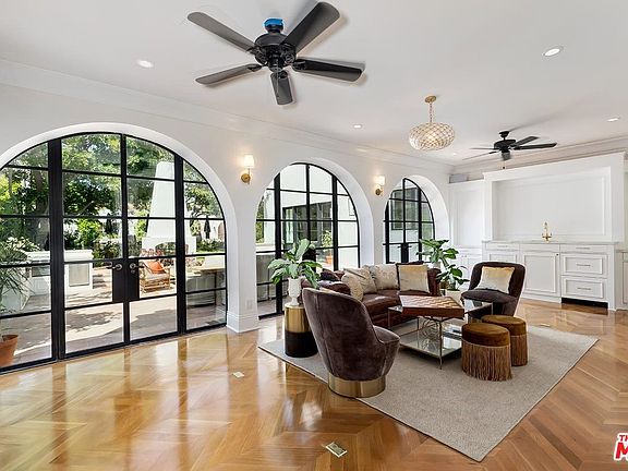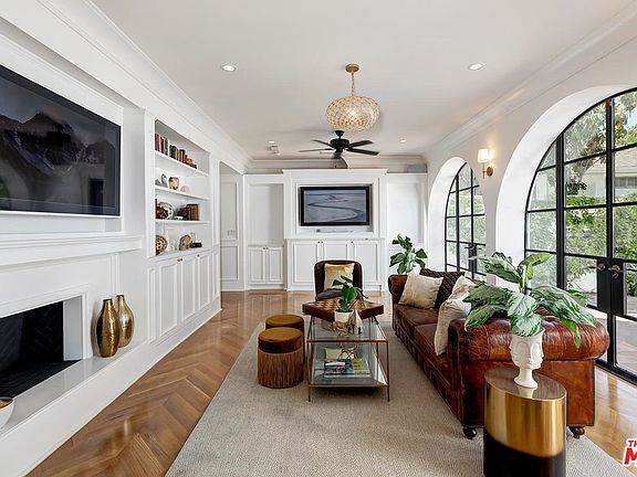Remarkable newly redone and reimagined 2sty gated Monterey Spanish estate on a coveted Westend Flats 700 block. Finished with the utmost quality and a superb modern design aesthetic, the home exhibits sun-filled rooms with herringbone wood floors, reclaimed stone, wainscoting, high ceilings, built-ins, 6 fireplaces, and French doors. Phenomenal new chef's kitchen/family room combination replete with top appliances, fireplace, and walk-in pantry. Separate library/office and sun room. 5 bedroom suites upstairs including an enormous master with room-size walk-in, fireplace, balcony, and ultra-luxurious bath.Wonderful large guest house at the rear of the lot with a bedroom suite and gym. Ultimate entertainers' rear yard with patios, BBQ Center, large lawn, fire pit, pool, spa, and mature foliage for privacy. Exquisite furniture may be available separately.