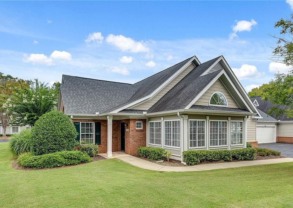 Welcome to the perfect opportunity to live in one of Roswell’s most sought-after gated active adult communities, located in the heart of Historic Roswell. This is truly maintenance-free living at its finest—just steps from shopping, dining, and scenic parks with walking trails. This beautifully maintained home features a bright, open floor plan with two spacious primary suites, each offering a private ensuite bath and generous, custom walk-in closets. The fireside great room flows seamlessly into the sun-drenched sunroom—perfect for morning coffee, enjoying nature, or entertaining guests. The kitchen is a standout, featuring granite countertops, stainless steel appliances, and abundant custom cabinetry, all overlooking the dining area and great room—ideal for open-concept living. Throughout the main living areas, you'll find durable and elegant hickory cedar luxury vinyl plank flooring. Additional highlights include newer HVAC and water heater, and an epoxy-coated garage floor that reflects the meticulous care of this pristine home. The community offers a wealth of amenities including a clubhouse with meeting rooms, a card room, game room, pool room, and fitness center. Situated in a quiet location at the back of the community—this home offers a peaceful retreat while still being conveniently located. Don’t miss your chance to experience luxury, comfort, and convenience in this vibrant active adult community.