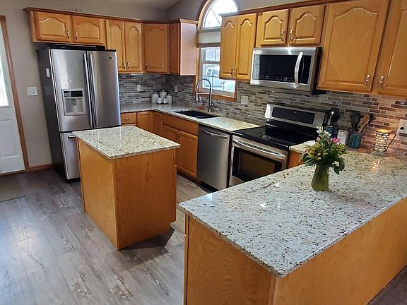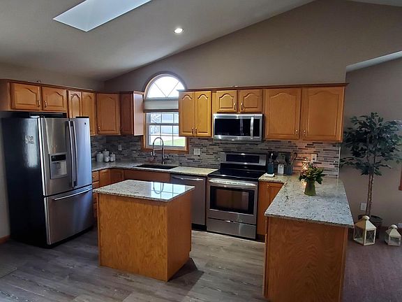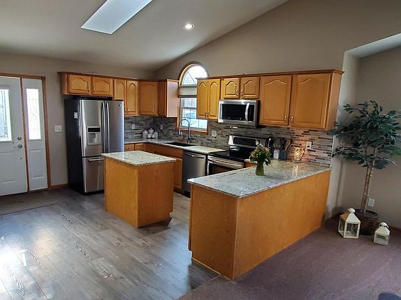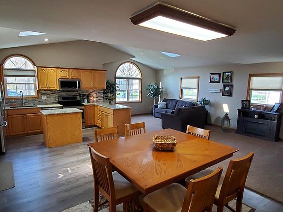 Set your furniture down in this beautiful 3 bedroom , 1500 sq ft ranch. This home features an open concept that people want to create. The kitchen with granite counter-tops opens up to a dining area, a living room, and sitting area with TV. There are vaulted ceilings, can lights, and newer flooring throughout. The master bedroom features fire place, master suite with laundry, and personal office. This home has a heated double stall garage, patio with fire place, and back yard with large storage shed.