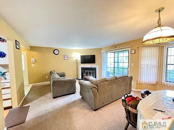 Explore this inviting 2-bedroom, 2-bath ground-level unit in the sought-after Woodhaven community. This well-maintained condo offers a private entrance, a cozy wood-burning fireplace, a private patio for outdoor enjoyment, and two spacious bedrooms including a master suite with a walk-in closet and dual vanity bathroom. There's also a laundry room and a guest bath. Abundant storage and easy access to major highways, dining, shops, and the Edison Train station make this a rare find. Don't miss out on this opportunity for comfortable and convenient condo living.