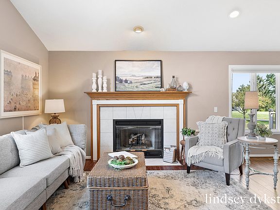 Move-in ready 2-bed, 2-bath Caledonia golf course stand alone condo on the 9th hole of StoneWater Country Club, set behind the tee box for privacy and sweeping views. Features hardwood floors, recessed lighting, vaulted ceiling, fireplace, dining area, and a spacious kitchen with solid-surface counters, ample storage, and abundant natural light. Main-floor laundry and a large primary suite with built-in vanity and generous closet space. Lower level is finished with a full bathroom. Relax on the back deck overlooking manicured fairways and landscaped grounds. Two-stall garage with attic space & plenty of storage. Quiet cul-de-sac location less than 2 miles shopping, entertainment, parks, and everyday conveniences, with low-maintenance HOA living so you can enjoy more free time!