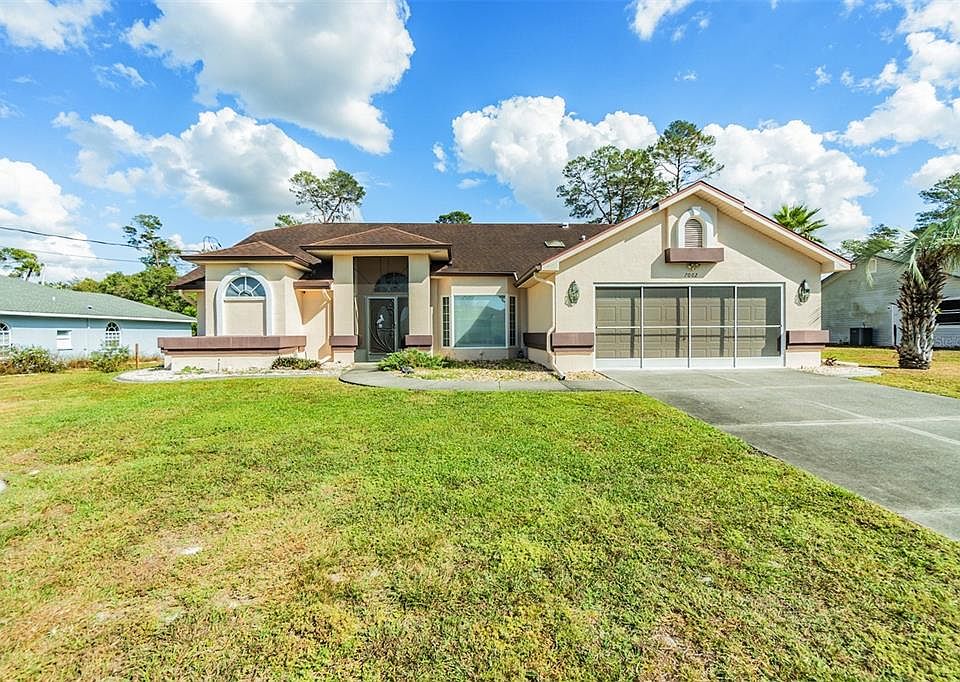 Welcome to this FABULOUS 3 bedroom 2 bath home in the well-established neighborhood of Royal Highlands in sunny Brooksville, FL. Enter this home through beautiful double doors in the screened-in entrance way where you’ll find an open floor plan with cathedral ceilings boasting 1,698 Sq Ft under a roof that is nine years young, an HVAC that is five years old, and a water heater that just turned six! Through the triple-pocket sliding doors out of the living room or double-pocket sliding doors out of the owner's suite, you will find an oversized covered lanai where a swimming pool sits with a cooling deck. Best of all is that you won’t have to worry about water being tracked into the house after splashing around in the pool since you have a door that leads into the second bathroom! The large owner’s suite is equipped with a ceiling fan, dual sinks, a garden tub with a separate shower, and two ample closets. In the other bedrooms, you will find ceiling fans with large closets as well. Tucked away in the backyard of nearly half of an acre, is a shed/workshop with electricity for the craftsman or handy person that could be doing some upgrades to this GEM! Don't overlook this remediated home!