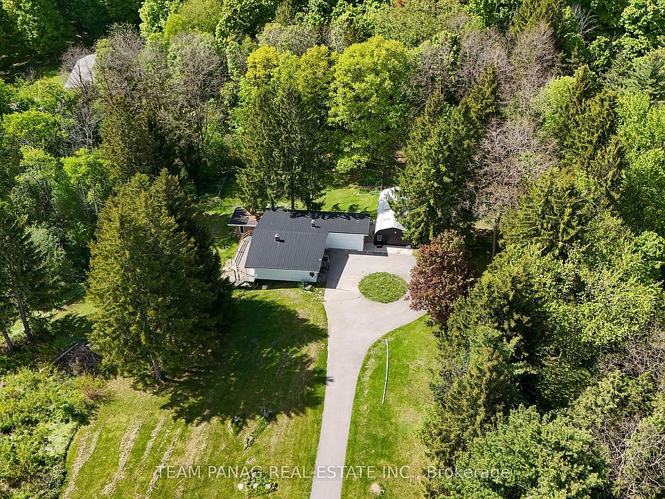 Nearly 10 acres of scenic countryside in Caledon offer the ultimate in privacy and tranquility, nestled among towering mature trees just minutes from Caledon East, Brampton & Bolton. This spacious bungalow features a large living room with expansive windows, an elevator, and a functional kitchen that opens onto a secluded deck perfect for taking in the natural surroundings. With no nearby neighbors, peace and seclusion are guaranteed. The second bedroom on the upper level was previously two separate rooms and could be converted back if desired.The finished walk-out basement includes a separate entrance, a cozy rec room with a wood-burning fireplace, two bedrooms, and two bathrooms. Enjoy direct access from the oversized garage, along with a separate workshop ideal for hobbyists or equipment storage. The gated circular paved driveway provides ample parking, and the backyard includes a fenced area for animals. With frontage on two roads and located on a quiet paved sideroad, this property offers a prime opportunity to build your dream home or generate rental income. Ideally situated close to Caledon East, Bolton, Toronto, and the airport! Come explore the exciting potential this unique property has to offer!