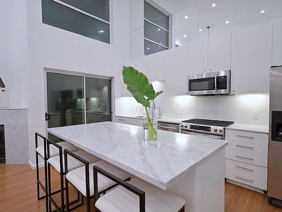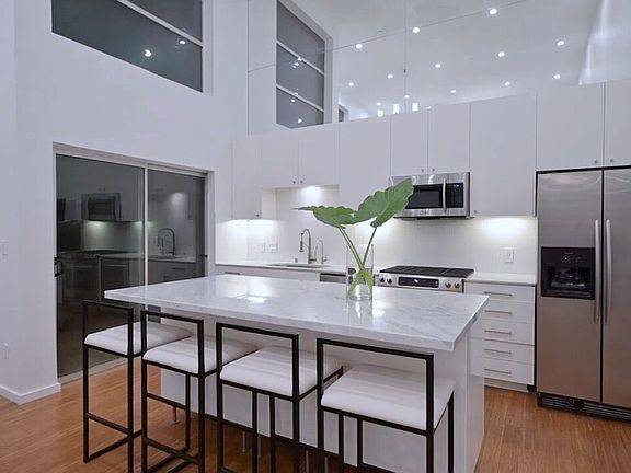 Beautifully furnished designer residence in the sought-after Hawthorn Lofts, right in the heart of Hollywood. This two-bedroom, two-bath loft impresses with its soaring 18-foot ceilings, marble floors, and curated Restoration Hardware decor. The open layout blends style and comfort, with a dramatic living area featuring a gas fireplace and floor-to-ceiling windows that fill the space with natural light. The chef's kitchen is finished with high-end materials, while both king bedrooms include elegant marble bathrooms. Additional features include in-unit laundry, two parking spaces, and access to a secure building with a rooftop deck. Ideally located near some of Hollywood's best dining, shopping, and entertainment, this home captures the essence of sophisticated city living.
