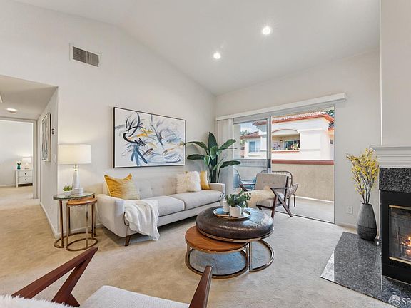 Welcome to 7063 Dublin Meadows,#H, a beautiful top-floor, 3-bedroom, 2-bath, single-level condo in the sought-after Alamo Creek Villas community. This light-filled home offers an open floor plan with vaulted ceilings and modern finishes throughout. The inviting living room features a cozy fireplace and a large sliding glass door that opens to a private patio, perfect for relaxing or entertaining. The updated kitchen is appointed with granite countertops, stainless steel appliances, and a conveniently located laundry area. The private primary en-suite is thoughtfully separated from the secondary bedrooms for added privacy. Bedroom three offers a walk-in closet, while bedroom two enjoys direct patio access. Additional highlights include recessed lighting, central A/C, and abundant natural light. A detached one-car garage, additional assigned parking space, and ample guest parking add everyday convenience. Residents enjoy resort-style amenities including a clubhouse, fitness center, sauna, pool, tennis court, basketball court, and sand volleyball. With low HOA dues covering water and garbage, this home offers incredible value. Ideally located near top-rated schools, scenic trails, Dougherty Hills Dog Park, BART, shopping, and freeways, experience the very best of Tri-Valley living!