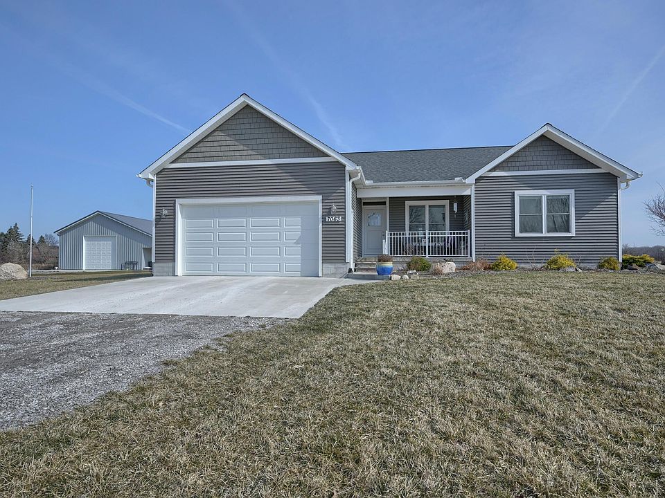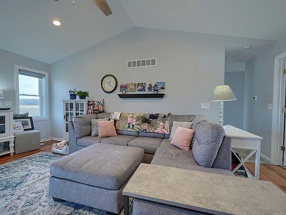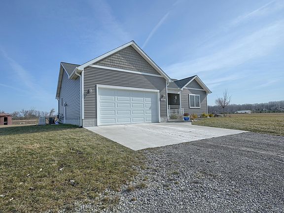 Discover serenity as you approach this inviting ranch set on 3 acres and surrounded by nature and acres of farm land. As you enter this 3 bedroom, 2. 5 bath newer built home, you will walk into an inviting living room with cathedral ceilings that flows into the open kitchen. The eating area offers plenty of sunshine and beautiful views of the spacious yard and fields. This property offers a full basement, water softener, a whole house generator (hard wired) and insulated floors in the basement. Pole Barn, 30x48. Come see for youself.