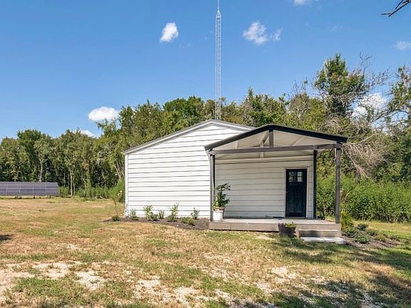 Private Sanctuary: Modern Barndominium on Nearly 5 Pristine Acres. Discover your own rural paradise on this secluded, tree-lined property where contemporary design meets elegance. This stunning 2021-built barndominium offers the perfect blend of modern luxury and countryside tranquility. Step into an open-concept haven where vaulted ceilings and abundant natural light create an airy, welcoming atmosphere. The central kitchen features granite countertops, soft-close cabinetry, and comes complete with refrigerator. A sophisticated wine bar with extensive built-in storage makes entertaining effortless, while the neutral palette throughout provides the perfect backdrop for your personal style. Four generously sized bedrooms each feature ceiling fans, ample closet space, and individual mini-split systems for personalized climate control. Two full bathrooms with tub-shower combination offer convenience. Luxury vinyl flooring flows seamlessly throughout—no carpet maintenance required. The detached garage presents incredible potential as a workshop or hobby space. A second prepared building site includes electricity and septic connections, ready for an additional residence or RV setup. Current mobile home on site does not convey and will be moved. Free standing solar panels provide eco-friendly energy efficiency and long-term savings and terms are negotiable. Unwind beside your own peaceful pond while taking in the natural beauty of your nearly 5-acre estate. With NO HOA restrictions, this blank canvas awaits your vision—whether that's a hobby farm, recreational paradise, or simply your own private sanctuary. Come and make this one yours!