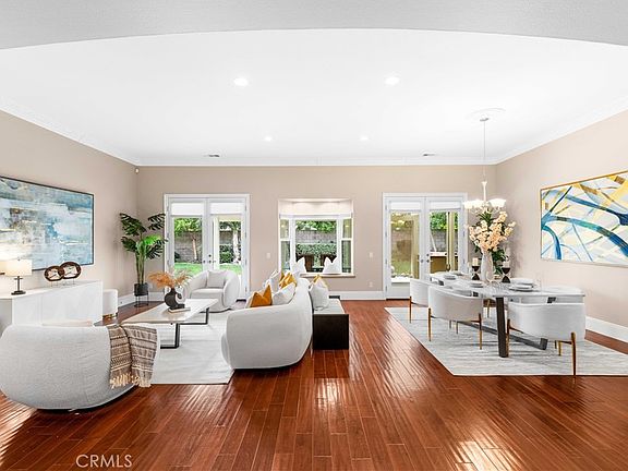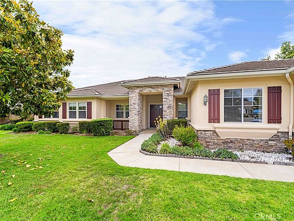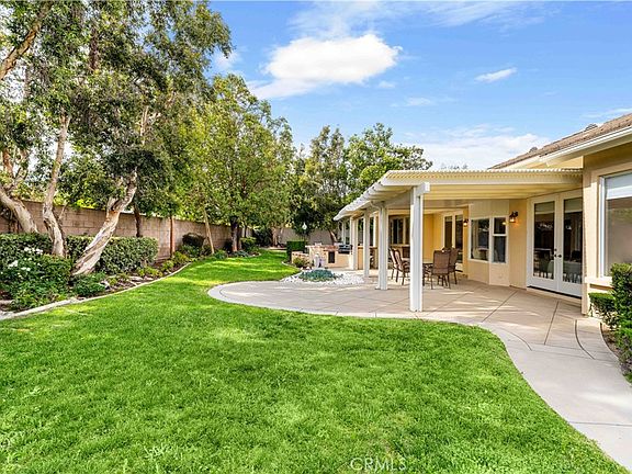 Welcome to this stunning rare single-story estate, ideally nestled on an expansive lot in a quiet cul-de-sac with ultimate privacy and charm! Boasting 5 spacious bedrooms, 3 bathrooms, an oversized 3-car garage, and a large extended driveway, this home offers comfort, elegance, and room to grow. As you enter through the double-door entry, you’re greeted by a flowing open floor plan which opens up to the large living room with elegant crown molding, high ceilings, recessed lighting and plenty of natural light. The family room is open to the kitchen, including a cozy fireplace — perfect for entertaining or relaxing evenings at home. The gourmet kitchen features beautiful granite countertops and backsplash, a large center island with seating, and abundant cabinetry — a dream setup for home chefs and family gatherings. Gleaming hardwood floors run through most of the home, and large windows throughout bring in warm sunlight and serene views. Retreat to the primary suite, a peaceful haven overlooking the backyard. The ensuite spa-style bathroom features dual vanities, a soaking tub, walk-in shower, and a large walk-in closet. Step outside to your private oasis: a beautifully landscaped 27,029 sqft lot with fruit trees, a covered patio, and a built-in BBQ island with sink — ideal for entertaining or enjoying a quiet morning coffee. There's ample space to add a pool, ADU, or create your dream backyard. Additional feature includes an indoor laundry space with utility sink. Prime location near top-rated schools, Victoria Gardens shopping center, dining, parks, and convenient access to 210, 15, and 10 freeways. Don’t miss out on this rare gem—schedule a tour today! (Staging has been removed; the photos with staging were taken beforehand.)