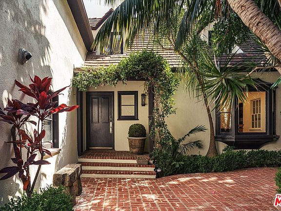 Set behind mature hedging and a private gate, this east coast traditional unfolds into the relaxed elegance of an expansive Californian residence, across a rare extra large, flat parcel in the Outpost Estates--where timeless architecture meets the tranquility of a resort-like retreat. Enveloped in lush landscaping and designed for effortless indoor-outdoor living, the home feels like a private sanctuary in the heart of the Hollywood Hills. Bathed in natural light and grounded in warmth, the residence maintains an easy dialogue with its surroundings. Nearly every window captures a vignette of greenery, while multiple French doors extend the interiors to the saltwater pool, dining terraces, and tropical gardens beyond. The expansive family room, anchored by a gas-burning fireplace, flows naturally into a sitting area, formal dining room, and the outdoors--creating a perfect setting for gathering and entertaining. A media room with soaring ceilings opens directly to the backyard and adjoins a downstairs office, offering additional flexible space for work, creativity, or quiet retreat. The large chef's kitchen serves as the home's true heart, featuring a central peninsula, an intimate sitting area with a second fireplace, and direct outdoor access. A generous walk-in pantry and a fully equipped outdoor kitchen complete the space, suitable for both daily living and larger occasions. Upstairs, the primary suite offers a peaceful escape with skylights, a separate living room and a generous walk-in closet, with abundant storage, custom cabinetry and tailored lighting, seamlessly transitioning into a bathroom defined by European craftsmanship. Finally, a private balcony overlooking the pool and featuring both canyon and city views. Two additional bedrooms, including one with a private balcony, share a newly renovated Jack-and-Jill bath. A fourth bedroom on the lower level, complete with an en-suite bath, provides comfort and privacy for guests. Additional features include a two-car garage, gated motor court, and integrated smart-home updates throughout. 7064 La Presa Drive is a home both rich in character and harmonious with its surroundings, offering guests a deep sense of privacy and truly embodying indoor / outdoor living.