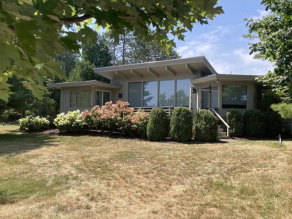 Lake Michigan Beach Home. Over 100' of sand beach. Contemporary ranch filled with light from the east and west. Living room with vaulted ceiling and a wall of windows overlooking the lake. Warm natural stone fireplace. Lakeside dining room. Kitchen with corner windows, breakfast bar and appliances. Kitchen, dining room, living room and owner's suite all enjoy lake views. Designed to provide long views within the home but with well designed living spaces. 1st floor laundry. 3 bedrooms, 3 baths. Owner's suite has lake side windows, deck access and private bath. Heated garage. Stand by natural gas generator. Full basement.Recent roof and exterior paint. Tile and carpet floors. Lakeside deck. Pella windows. Natural gas heat and central air. Concrete circle drive.