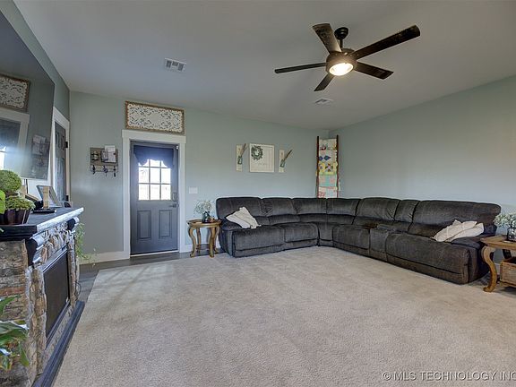 Country home with inviting wrap around porch on 5 acres fully woven wire fenced, on paved road, easy access to Tulsa, Fiber internet, 30x40 shop, RWD 6 so no water issues, beautiful sunsets.