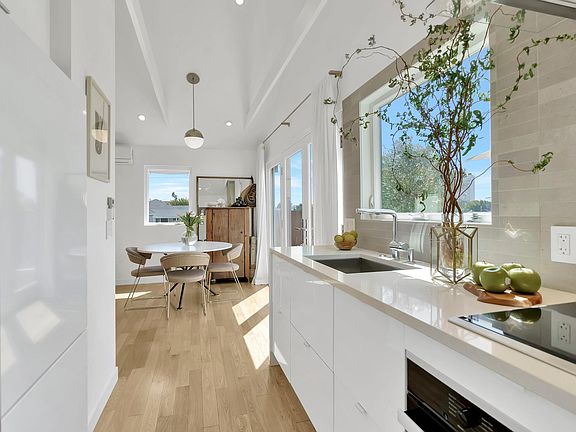 Beautiful warm and light filled Accessory Dwelling Unit (ADU) located in the Silicon Beach/Loyola Marymount University area. Constructed in 2020, this home is completely detached and separated from the main house providing maximum privacy and comfort and contains its own address, two-car off-street parking spaces, and gated entry from 85th Street. Upon entry to the property, you and your guests are greeted by beautiful landscaping including sycamores and olives and bunch grasses. A whimsical stairway entry leads to a private-gated lower courtyard with olive trees and privacy hedge, which transitions to a large elevated wrap-around redwood deck with more olive tree and chilllax outdoor lounge furniture (included)! This outdoor space is perfect for entertaining and Yoga! Your entry to the house is framed by a beautiful set of French doors leading from the redwood deck to the exquisite interior space. The interior open-concept space features new paint, solid white oak wood floors throughout, vaulted ceilings, large built-in closet with three large storage areas above, built-in stackable washer/dryer, casement windows, rear door leading to deck, and recessed lights with dimmers throughout. The expansive vaulted ceiling bathroom includes a large mirror and vanity, two-person rain shower with shower wand, glass panel, shampoo and soap niche, and tile shower and floors with access to the wrap-around deck. The kitchen includes high-end appliances (e.g., Miele, Wolf) with a refrigerator, two-burner induction cooktop, combination convention oven/microwave, garbage disposal, soap dispenser, quartz countertops with waterfall, stainless steel hood, full length cabinetry, broom closet, pantry, and storage areas. The dining room has an expansive view of the deck area and olive trees with beautiful sunsets in the evenings. Note: Photos are based upon previous tenant's furnishings. Utilities equally shared. Gardner included.