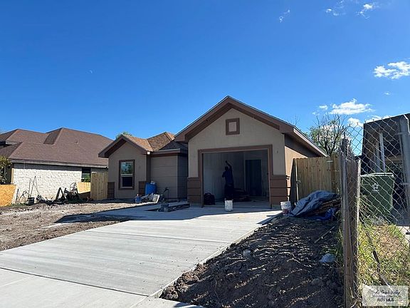 The contemporary stucco exterior gives this new construction a fresh, modern look that stands out in the El Lago subdivision.This is a 3 bedroom 2 bath with attached 1 car garage. Tile floors throughout. Nice Kitchen island. Open concept. Partially fenced.  Currently under construction, should be ready end of November 2025. Estimated Taxes gleaned from Cameron County Tax Transparency report