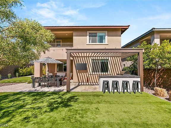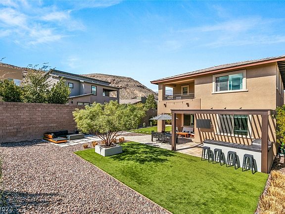 Nestled in Summerlin South's esteemed "Jade Ridge" community, this meticulously maintained two-story residence graces one of the neighborhood’s largest cul-de-sac lots. The expansive backyard presents an entertainer's paradise with a built-in BBQ, standing firepit, and ample lounge space. Endless opportunities await to craft your own oasis ideal for a pool. Inside, the sleek interior boasts an open and airy floor plan, highlighted by a gourmet kitchen featuring a large island, quartz countertops, and stainless-steel appliances. The primary suite offers a resort-style bathroom and a balcony overlooking picturesque mountain views. With three bedrooms, including a spacious loft, this home provides a flexible layout for customization. An upgraded 240-volt charger installed to accommodate any electric vehicle. Nearby trails, parks, and the newly developed Durango Resort, UnCommons, ensure convenient access to outdoor and urban amenities, embodying elegant living in Summerlin South.