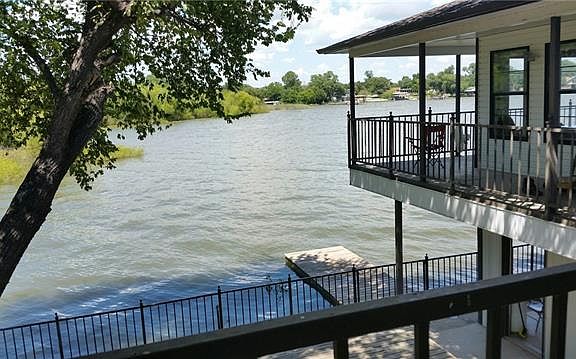 Open water Eagle Mountain Lake front, lakeside dock&deck. wrought iron fenced, electric gate. metal frames and boards. can be set up as 2 separate suites with separate kitchen and living room, 3.5 baths inside.Huge boat house larger than 4 car garage can be used as storage. 2 oversize garage plus 2 covered carport .Entire back side has concrete balcony open to lake view. The suite in the back sits above water with Cement retaining wall. MUST SEE!