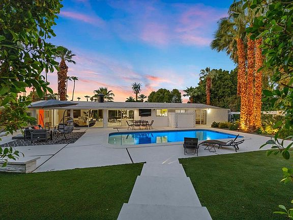 Welcome to the President's Playground in Thunderbird Heights. This exceptional property exemplifies atomic ranch design with bold architectural elements, modernized by the previous owner in 2012 and recently refreshed. Upon walking through a private entrance, guests are surrounded by plush landscape, ultimate seclusion and a large and refreshing pool.This property is one in a million. With an extremely large lot, this property offers endless opportunities for additions such as a tennis court or guest house.Expansive glass walls offer stunning views of the surrounding mountains, creating a perfect indoor/outdoor living experience.This distinct mid-century modern home showcases a vintage fireplace and other retro pieces accentuating the style. Other highlights of this residence include a modern kitchen with quartz countertops, stainless steel appliances, and stylish cabinetry. It features two ensuite bedrooms, polished stone tile flooring, and brand-new carpet in all bedrooms. This beautifully designed home is being with the furniture.