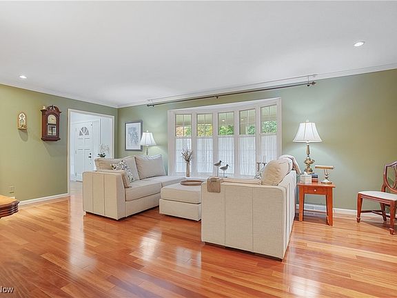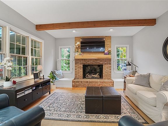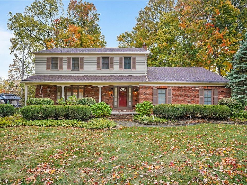 Welcome to this beautifully maintained 4-bedroom, 2½-bath brick colonial perfectly situated on a picturesque corner lot in Brightwood Lakes - one of Concord Township's most desirable neighborhoods within the Mentor School District. Classic curb appeal greets you with a charming front porch, stone paver walkway from the driveway & mature landscaping that enhances the home's timeless elegance. Step inside & discover gleaming hdwd floors that flow throughout the spacious LR, formal DR, FR & the entire second level. The inviting LR features a large bay window & crown molding, while the DR offers wainscoting, crown molding & sliding glass door leading to a lovely deck. Bifold doors open to an EI kitchen w/white cabinetry (some with glass fronts), gas stove, double convection oven w/warming tray & recessed lighting. The adjoining FR exudes warmth with its beamed ceiling, gas log brick FP, window seats with storage, wet bar & access to the screened-in patio. The patio features Nature Stone flooring, plexiglass panels & skylight, creating a serene space to relax or escape to enjoy the view of the private backyard. Upstairs, hdwd floors continue through four generous bdrms, including a primary suite with a walk-in closet & private FB. One bdrm offers both a standard & cedar closet. Hall bath features a skylight with open access. A huge walk-in attic provides easy storage access conveniently located at the top of the stairs on the second floor. The lower level includes a recreation area with storage under the stairs (removable railing for larger items), a workshop, laundry area with newer W/D (2024), laundry chute & newer hot water tank (2024). Basement waterproofing was completed in 2015 and includes a transferable warranty. Enjoy the deck w/ powder-coated wrought iron railing & concrete patio to enjoy the tranquil setting of a landscaped corner lot. A two-car garage w/storage cabinets & workbench completes this exceptional home blending comfort, character & enduring style.
