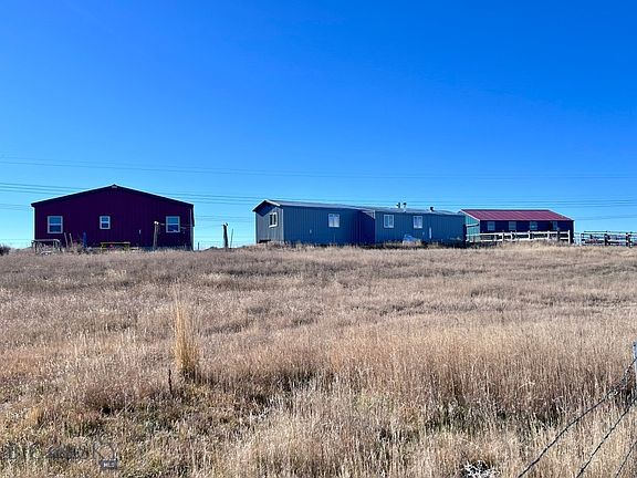 151 acres set up for grazing with perimeter fencing, corrals, barn, 2 wells, automatic waterers, and approximately 100 round bales negotiable. Currently runs 25 pairs. The 2700 sq ft metal residential building is finished outside, with floor plans available for interior completion. Includes a livable 2 bed, 2 bath trailer and a 1500 sq ft barn. Features a productive garden, 5 hydrants, and frequent wildlife including game birds, deer, and elk. Located less than 15 miles from Billings, Montana.
