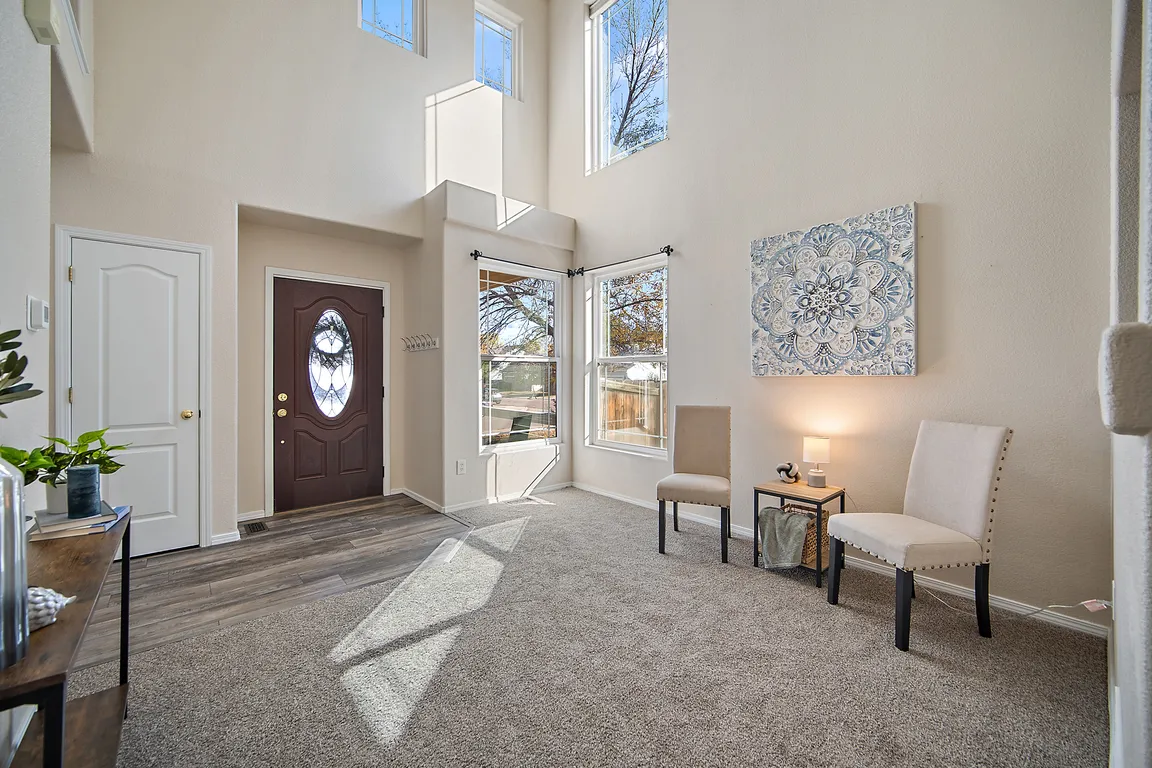 Former John Laing Model Home. Step inside from the inviting front porch to your new home-- filled with convenient touches and plenty of space for comfortable Colorado living. The large kitchen features a center island, abundant cabinetry, and a convenient pantry-- perfect for cooking and gathering. The adjoining dining space overlooks ...