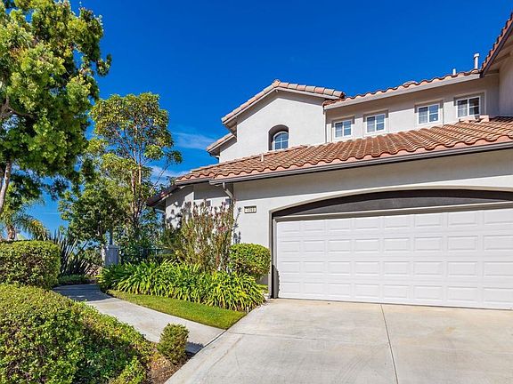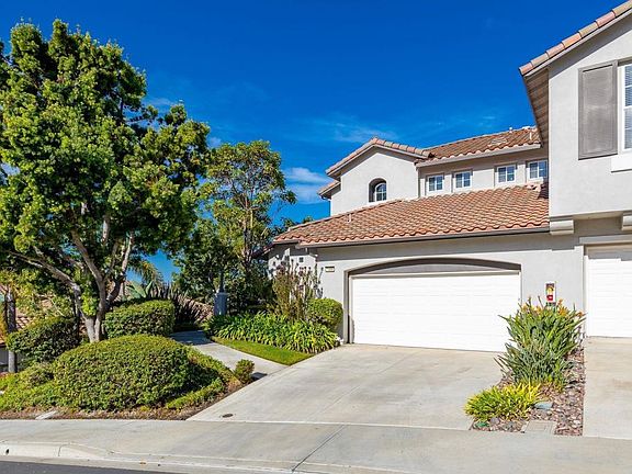 This is the one you have been waiting for in the gated community of Viaggio. Plan 3 (largest floorplan) with primary bedroom downstairs and primary bedroom upstairs. This home is 2,272 sq ft of pure warmth and livability. It sits high above the 5th fairway/green of Aviara Golf Course facing West to enjoy the incredible ocean breezes. As you enter the home you are greeted by soaring 20 ft ceilings in the living room with walls of windows which allow the afternoon sunshine to fill the space. This home was the former model so there are upgrades throughout. Upstairs is a large, comfortable loft which is perfect for a pullout sofa for extra sleeping space. The back patio is very large and wonderful for parties. There is a covered seating area off of the kitchen and a large balcony off of the upstairs primary bedroom with views forever. Firepit is against the back fence, overlooking the 5th green. The resort like community pool is directly across the street....only community within Aviara that has cushions on all the pool furniture. This is truly a very special home that needs to be seen to be appreciated.
