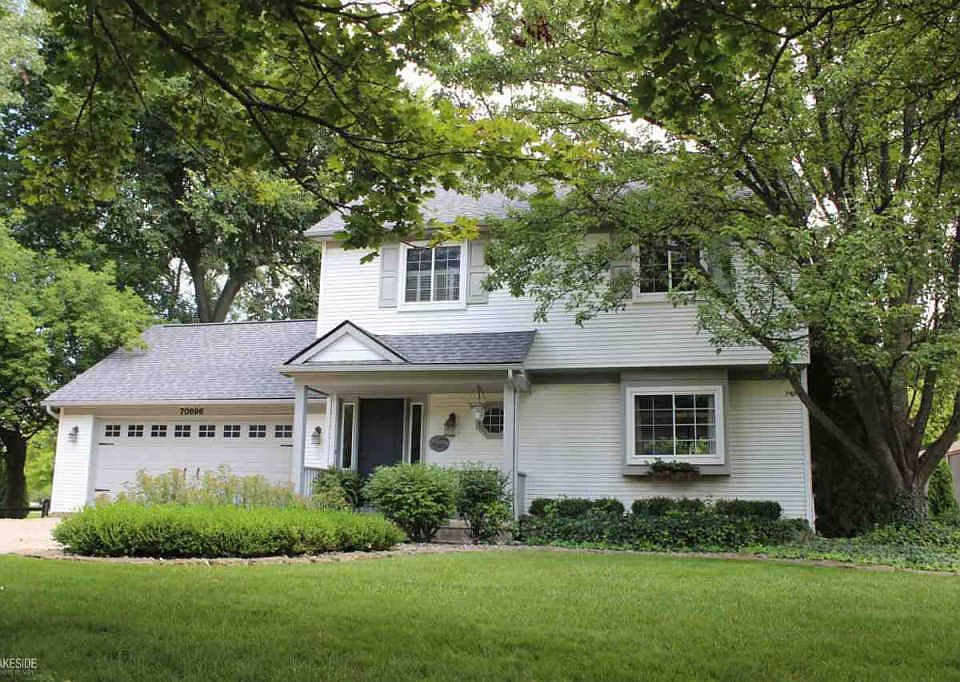 Absolutely adorable four bedroom family home! Features entry with hardwood floors & double coat closet; island kitchen with walk-in pantry and all stainless steel appliances included; breakfast nook/dining with hardwood floors & huge doorwall leading to 2-level deck; family room with hardwood floors & built-in shelves/entertainment unit; vaulted ceiling great room with gas fireplace, desk cubby, French doors to deck; first floor master suite with vaulted ceiling & large walk-in closet; first floor laundry w/washer & dryer included; 2nd floor with 3 bedrooms & large full bath with jetted tub & ceramic shower; partially finished basement with rec room & huge storage closet; 2 car drywalled garage with overhead door with opener; fantastic yard with mature trees, perennial landscape beds, 2-level deck with hot tub, yard with firepit. A great family home located on a quiet, dead-end street!