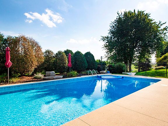 4 bedroom 2.5 bath 2 story in Century East with resort like back yard including in-ground saltwater pool, built in gas grill and gas fire pit. Home backs up to walking path... no neighbors behind you! Large foyer welcomes you into home that features 2 story living room and large formal dining room, both with cherry hardwood floors. Large kitchen features huge island for casual dining or entertaining. Kitchen was totally remodeled in 2011 with all new cabinets including wine fridge and microwave drawer. Downdraft Jenn Air range with grill and griddle attachments. All appliances stay. Family room boasts gas fireplace. Surround sound speakers stay. Kitchen and family room both have oak hardwood floors. Powder room and laundry room complete the 1st floor. 2nd floor features 4 large bedrooms. Master with tray ceiling and remodeled bath includes soaking tub, dual sink vanity and separate shower. Walk in closet has built in organization system. Master and hall both have oak hardwood floors. Large 2nd bedroom with vaulted ceiling. 3rd bedroom has oversized closet over garage for an abundance of storage. Main bath remodeled in 2018. Full basement ready to finish for your family's needs. Oversized 3 car heated garage has epoxy floor and built in cabinets for extra storage. Refrigerator stays. Sliding door from kitchen opens to your own backyard oasis. In-ground 16x36 heated saltwater pool with new liner in 2018. Plenty of outdoor living space includes large concrete patio and 2 paver patios, one with gas fire pit for those chilly summer evenings and the other has an automatic Sun Setter awning to help on the hot days. Inground sprinkler system. Ready to move in. Newer roof (2012), newer furnace/AC 2020 and new garage door and openers 2019. Ring doorbell, Nest thermostat and Nest fire/carbon monoxide detectors. Reverse osmosis system provides water to kitchen refrigerator for ice and water.