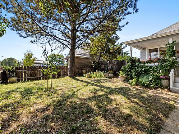 Enjoy the convenience of main floor laundry, stylishly updated bath, and three bedrooms that provide flexibility for family, guests, or a home office. The fenced backyard is perfect for entertaining with shady trees, a patio, and plenty of room to play or garden. Out front, the cheerful turquoise door and covered porch add to the curb appeal, complemented by low-maintenance siding for peace of mind.