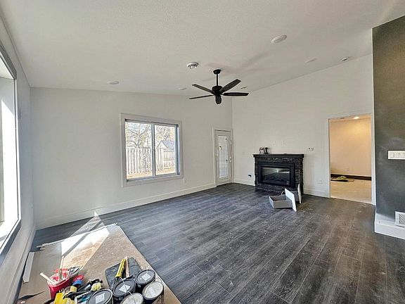This spacious slab-on-grade boasts 1184 square feet and features 2 bedrooms and 2 baths. The kitchen has lots of cabinets, an island, quartz countertops and black appliances. The dining/living area is a large open concept layout featuring hard surface, stone fireplace and a door leading to the backyard. The primary bedroom has a 3/4 en-suite bath with a linen closet, quartz and a walk-in closet. You will find 1 additional bedroom and a full bath with quartz. Completing this one level home is a nice sized laundry room with a brand new washer and dryer. Interior doors are white. The attached 2 stall garage is heated, insulated and sheet rocked. This home is walking distance to Minot State University and centrally located. This home has a smart thermostat, internet hub in garage, ring security in front, Alexa compatibilities, faux wood grey blinds, wired for surround sound in living room (one cable hooks your whole theatre up) and much more. Completion Date: May 16th, 2025