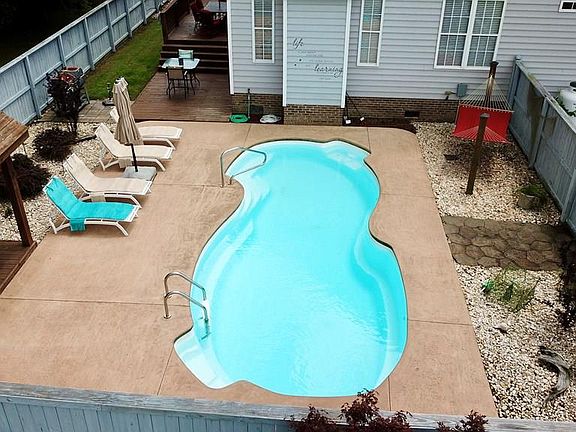 Beautiful Cape Cod home on large corner lot. Relax in your private fenced backyard oasis w/Inground saltwater pool, patio, deck, tiki hut, & pergola w/lights. Very open floorplan w/ family room & keeping room. 2 fireplaces. Dining room. Master suite w/ jetted tub & tiled walk-in shower & closet. Jack & Jill bathroom between the other 2 bedrooms. Transom windows allow lots of natural light. High ceilings throughout the home. Mud/laundry room. Huge 2 car attached garage w/ plenty of storage. Roof new in 2019. Upstairs is floored & ready for expansion. Waterfront community. Move-in ready!