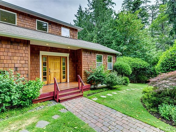 Welcome to this gorgeous custom built NW home, thoughtfully designed & maintained highlighting soaring ceilings, abundant windows, gas fireplace, open concept living, fresh interior paint, new appliances & hardwood floors. 2 beds up w/ ensuite master and walk-in closet. From the deck enjoy the picturesque backyard w/ terraced rock walls & pebbled rock pathways, fire pit accentuated with peaceful trickling waterfall, privately bordered by lush greenspace in secluded bliss near Lake Padden.
