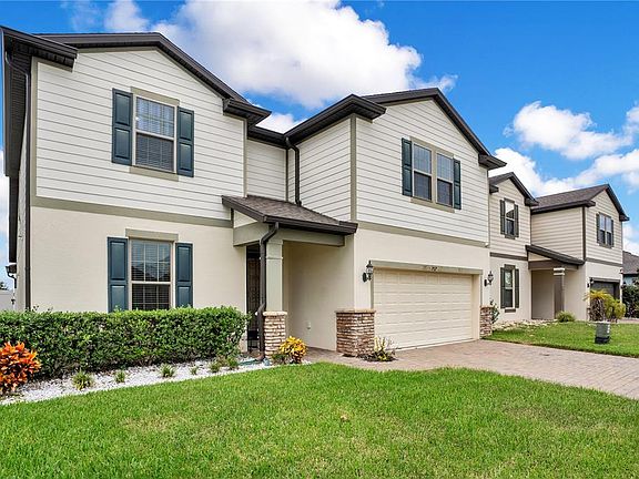 Welcome to Citrus Isle, where style, comfort, and convenience come together in one stunning home. With nearly 3,000 square feet of living space, this residence is more than just a house. It is a place designed for living beautifully. On the main level, the open layout draws you in with soaring ceilings, recessed lighting, and an oversized kitchen island that invites gatherings with friends and family. The master suite feels like a retreat with its garden tub, double vanity, and spacious walk-in closet. A versatile flex room offers endless possibilities, whether you need a home office, playroom, or creative lounge. The main level also includes a convenient half bath, a laundry room with custom cabinetry and sink, and a two-car garage finished with upgraded flooring and storage. Upstairs, a generous family room with built-in surround sound is ready to become your favorite hangout. It is the perfect space for movie nights, game days, or simply relaxing. Each bedroom has been enhanced with custom touches, and one enjoys the privacy of its own en suite bath. Smart home technology along with a newer roof, AC, and water heater provide peace of mind while you enjoy every corner of this thoughtfully designed home. Step outside to a private backyard retreat. The oversized screened patio is perfect for entertaining, dining al fresco, or simply enjoying Florida living without the bugs. Beyond the patio, the yard opens directly to a park, giving you a rare blend of privacy and connection to the outdoors. As part of the community, you also have access to the sister property which features a sparkling pool, a dog park, and another park for even more room to enjoy. Citrus Isle is close to shopping, dining, and schools, and HOA fees remain under $300 a year. Every detail of this home has been designed with comfort and style in mind. Discover it for yourself with a private tour before it is gone.
