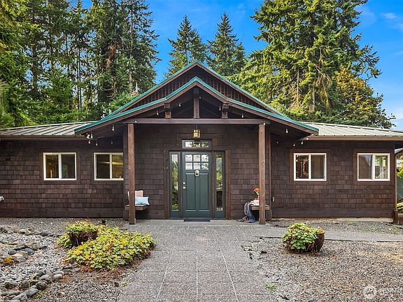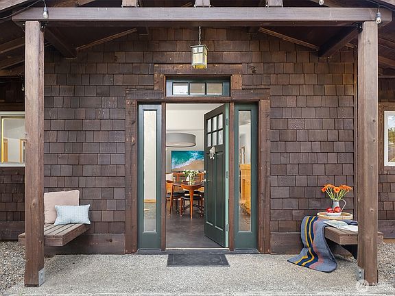 Timeless NW Craftsman by Asplund & Epstein, this retreat embodies Whidbey Island living with natural beauty & modern flavor. Wood shingles, timber posts & earthy tones ground the architecture in its forested setting. Minutes to downtown Langley & your fave coffee shop. Inside, the circular flow is designed for connection & comfort. Skylights & expansive windows fill the home with natural light. The kitchen offers double sinks, pantry & appliance garage. The primary suite has sliding doors to greenery, marble-clad bath with soaking tub & walk-in closet. 2 bedrooms provide stylish spaces. A large laundry, mudroom, storage & solar panels enhance daily life. Expansive yard, wide driveway & detached 2-car garage with covered walkway offer ease.