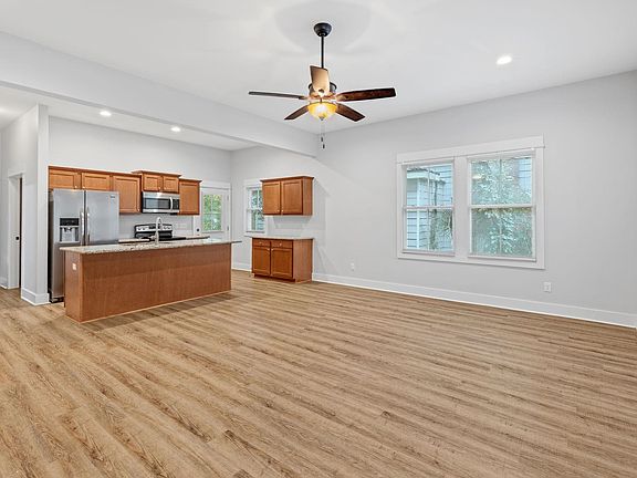 - Breakfast Counter / Bar, Granite Counters, Kitchen Island, Kitchen Open to Family Room, Recessed Lighting