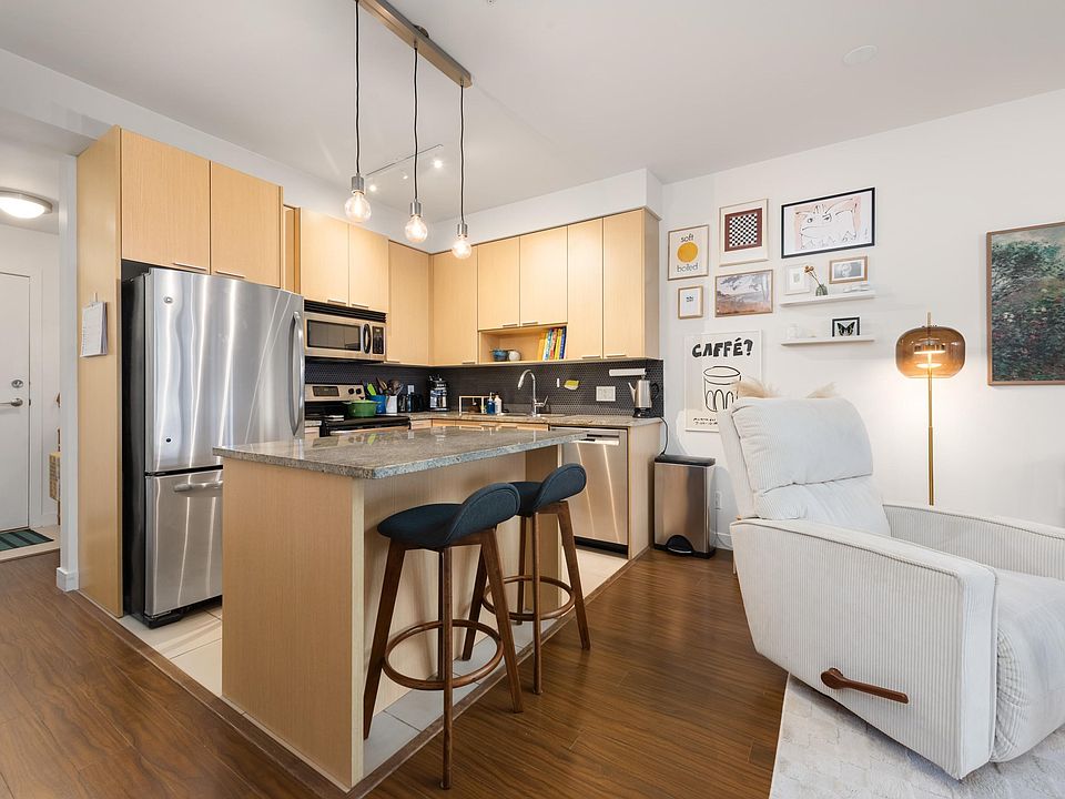 Welcome to this bright and spacious 2-bedroom plus den home in the heart of Fraserhood—one of Vancouver’s most beloved and walkable communities. Situated on the quiet side of the building, this home offers a thoughtfully designed layout with quality finishes. Inside, you’ll find high ceilings, granite countertops, and stainless steel appliances in the well-appointed kitchen. The spacious primary bedroom easily accommodates a desk or nursery setup, while the separate den area adds valuable flexibility. Enjoy your morning coffee or evening unwind on the private balcony. This well-maintained building offers a proactive strata, convenient guest suite, and a welcoming community feel. Located in a fantastic neighbourhood, you’re steps to cafes, restaurants, schools and transit.