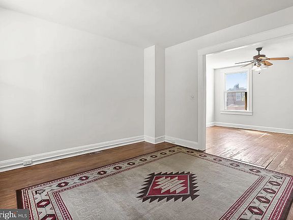 Two-bedroom, two-bath rowhouse in Better Waverly with large, wooded, and shaded rear deck; rear parking pad (for one vehicle); and finished basement with its own bathroom and shower. Very generous proportions across the living and dining rooms, as well as the master bedroom.